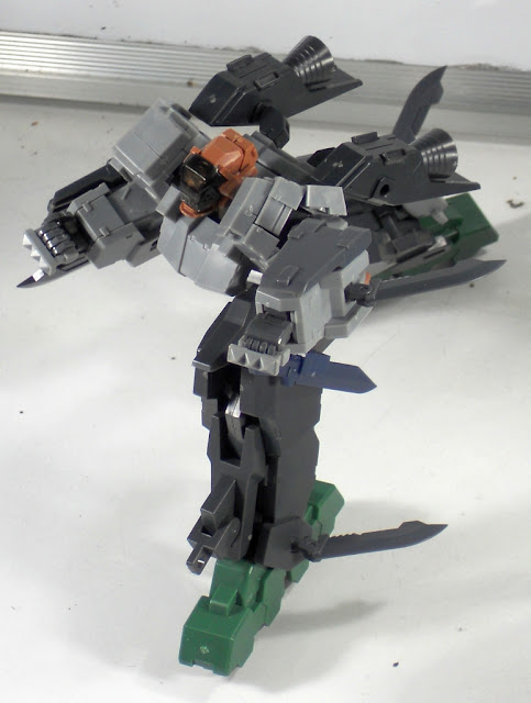 It's a given, of course, that the shoulder mounts ended up different, as the Ez-8 now uses the ball-joint shoulder. The advantage with this is that it allows for more posability, but the disadvantage is that it ends up with sagging shoulders more easily than the original stick joints - and even more so with the original HG version, which had no shoulder articulation beyond the basic stick and polycap joint.